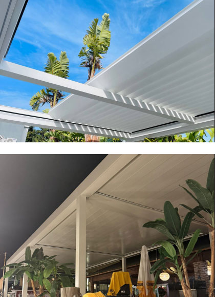 Bioclimatic systems bring flexibility and comfort to your outdoor living spaces with two advanced motion options. Designed to adapt to your needs, the dual-motion model allows you to control sunlight and airflow by tilting the panels, then fully retracts to open the sky above. Alternatively, the single-motion model combines tilting and retraction simultaneously, enabling a faster and more dynamic transition.