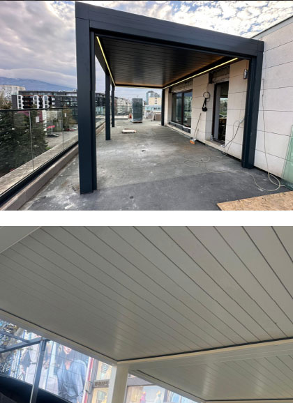 Both configurations offer effortless adjustment between shade, ventilation, and full openness. Whether you seek a cool retreat in summer, protection during winter, or an unobstructed view under the stars, Bioclimatic seamlessly adapts to your environment with a single command. Crafted from premium-quality aluminum, Bioclimatic features an integrated drainage system and exceptional structural durability, delivering a robust yet elegant solution. Its clean and contemporary design complements modern architecture while providing reliable protection. against sun, wind, and rain. From private terraces and luxury gardens to hotels and restaurants, Bioclimatic elevates every space with a refined and superior outdoor experience.