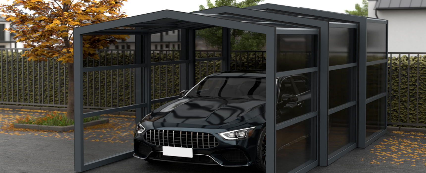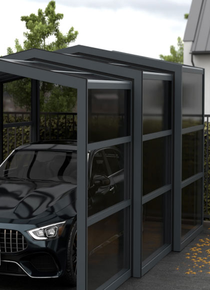 The Carbox Enclosure System is a fully enclosed and portable structure designed to protect your vehicle from rain, snow, sunlight, and dust -offering a contemporary alternative to traditional garages. Featuring 10 mm corrugated and 4 mm solid polycarbonate panels, the system combines a robust aluminum frame with optional front and rear enclosure solutions to deliver long-lasting protection. Its integrated wheels and modular assembly system allow for easy transport and quick installation.