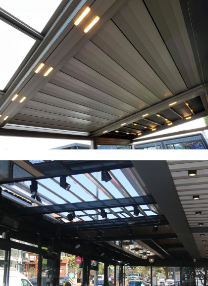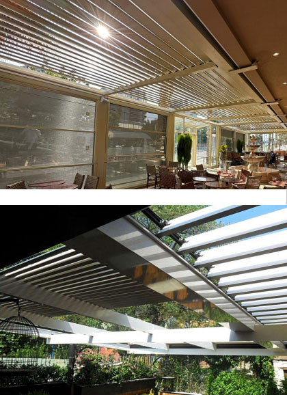 Engineered with precise tilting and full-panel retraction features, it delivers adaptable climate control and exceptional comfort throughout the year. Its broad, angled louvers not only ensure efficient water drainage but also create a bold architectural statement. With a single command, the roof glides effortlessly-from softly filtered daylight to a completely open sky-seamlessly harmonizing with its surroundings.